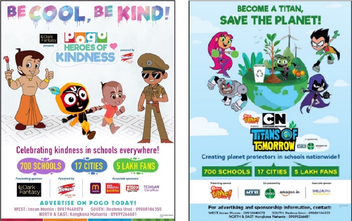 স্কুল কন্ট্যাক্ট প্রোগ্রামের ১৮তম সংস্করণের অঙ্গ হিসাবে, ‘POGO’ আবার ফিরিয়ে নিয়ে এসেছে ‘POGO হিরোস অফ কাইন্ডনেস’ এবং এর মাধ্যমে মানবিকতার গুণাবলীতে সমৃদ্ধ একটি উদ্যোগকে সামনে তুলে ধরা হয়েছে যেটি স্কুলের কচিকাচাদের সহানুভূতি, উদারতার শিক্ষা দেওয়ার পাশাপাশি তাদের কমিউনিটির জন্য কিছু ইতিবাচক করার ব্যাপারে উৎসাহ যোগাবে। সংস্থার এই উদ্যোগ তার সৃজনশীল চমৎকারিত্ব ও বিশেষ গুরুত্বপূর্ণ মানবিক ও সামাজিক বার্তা প্রদান করার জন্য বিভিন্ন উল্লেখযোগ্য পুরস্কারে ভূষিত হয়েছে এবং এই উদ্যোগে, সংস্থার সবচেয়ে ভালোবাসার ক্যারেক্টার, ছোটা ভীম, লিটল সিংঘম ও জয় জগন্নাথ-এর বলরাম-কে ব্যবহার করে কচিকাচাদের মধ্যে দয়া ও উদারতার বিভিন্ন দিক তুলে ধরা হয়েছে। এইসব ক্যারেক্টারের প্রতিটিই দৈনন্দিন জীবনে সহানুভূতি, ভালোবাসা ও উদারতার বিভিন্ন কাজকে উদাহরণ সহযোগে দেখায় এবং সেই সূত্রে, স্টুডেন্টদের নিজেদের জীবনে একই রকমের আদর্শ আচরণ করার জন্য উদ্বুদ্ধ করে তোলে। অন্যদিকে, ‘কার্টুন নেটওয়ার্ক (Cartoon Network) টাইটান অফ টুমরো’ পরিবেশ সংরক্ষণের বিষয়কে হাইলাইট করে। এর মাধ্যমে স্টুডেন্টদের একটি দীর্ঘস্থায়ী ও পরিবেশ-বান্ধব ভবিষ্যৎ নির্মাণের জন্য বর্তমানে পরিবর্তনের কারক হিসাবে কাজ করার জন্য আহবান জানানো হয়।