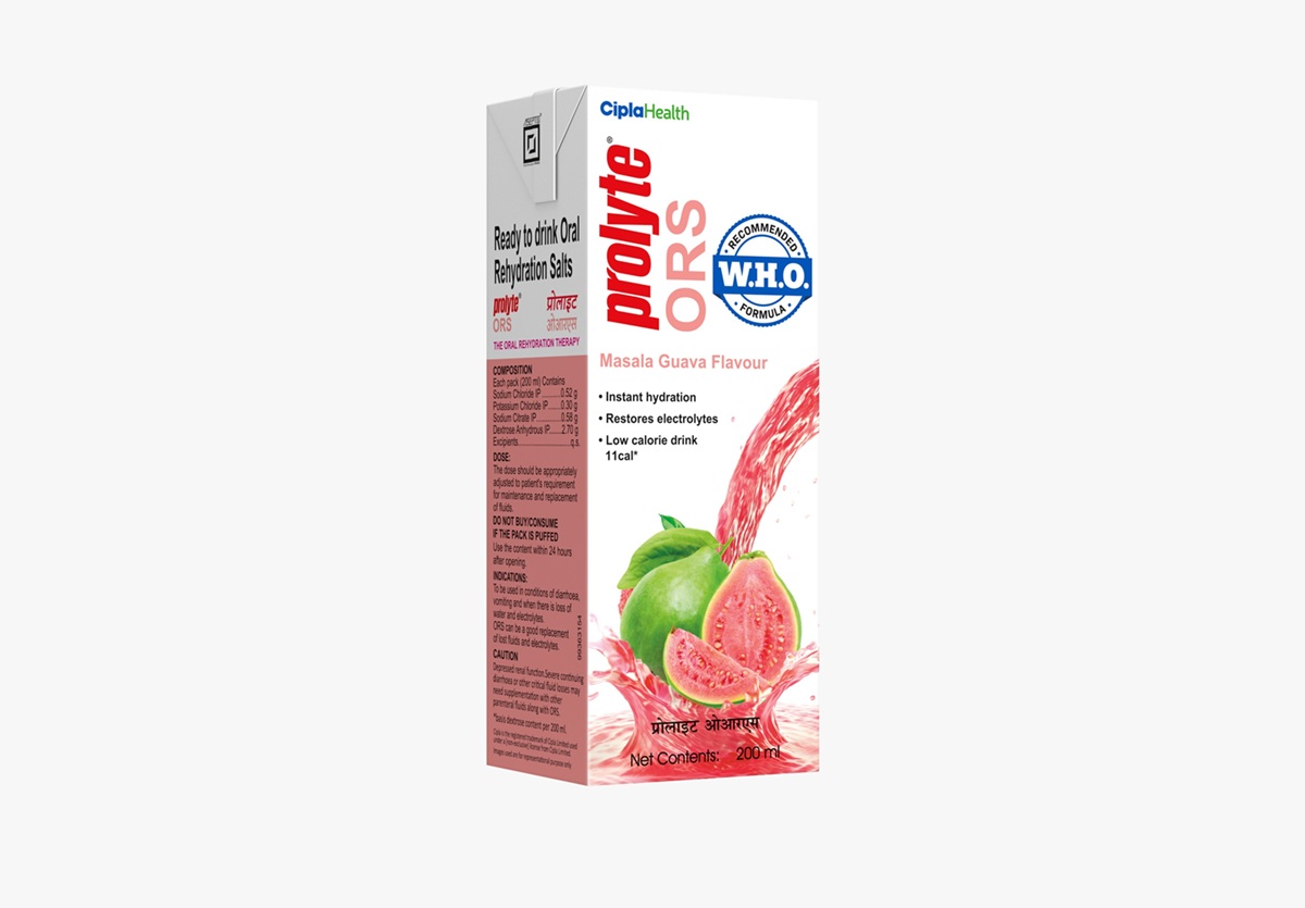 সিপলা হেলথ লিমিটেড থেকে ডব্লিউএইচও প্রস্তাবিত ওরাল রিহাইড্রেশন সল্ট (ওআরএস) ফর্মুলেশন প্রোলাইট ওআরএস সম্পূর্ণ নতুন মশলা পেয়ারা ফ্লেভার চালু করার ঘোষণা দিয়েছে। ভারতীয় ভোক্তাদের মূলে ডিজাইন করা হয়েছে, নতুন সংস্করণটি ভারতীয় তালুতে শিকড়যুক্ত স্বাদের সাথে ওআরএস-এর প্রমাণিত কার্যকারিতা একত্রিত করে, হাইড্রেশন কেবল কার্যকর নয়, উপভোগ্য করে তোলে যা বিজ্ঞান সমর্থিত ত্রাণ এবং একটি পরিচিত স্বাদ উভয়ই প্রদান করে।