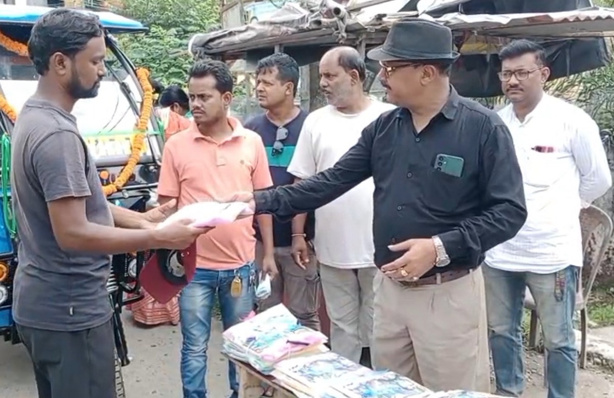 বর্ষা থেকে রক্ষা পেতে সাফাই কর্মীদের মধ্যে রেন কোট বিতরন করলেন দিলীপ বর্মন