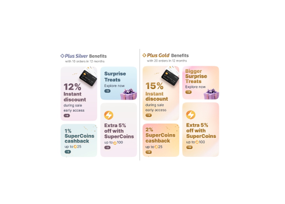 ফ্লিপকার্ট-এর প্লাস প্রোগ্রামের সদস্য হতে কোনও ফি-এর প্রয়োজন নেই, আর প্রতিটি অর্ডারে সুপারকয়েন জেতার সুবিধা রয়েছে (১ সুপারকয়েন মানে ₹১ সেভিংস)। এই কয়েনগুলি ফ্লিপকার্টের সব ক্যাটাগরির পণ্যে ব্যবহার করা যাবে, যা সেভিংসকে করে তুলবে সহজ ও ঝামেলাহীন। এছাড়াও, গ্রাহকরা ১২ মাসে মাত্র ১০টি লেনদেন সম্পন্ন করে ‘প্লাস সিলভার’সদস্য হতে পারেন, ২০টি লেনদেন সম্পন্ন করে ‘প্লাস গোল্ড’ আনলক করতে পারেন এবং প্রতিটি অর্ডারে অতিরিক্ত সুপারকয়েন উপার্জন এবং প্রাথমিক অ্যাক্সেস উইন্ডোতে আরও বেশি ব্যাংক অফার পেতে পারেন।