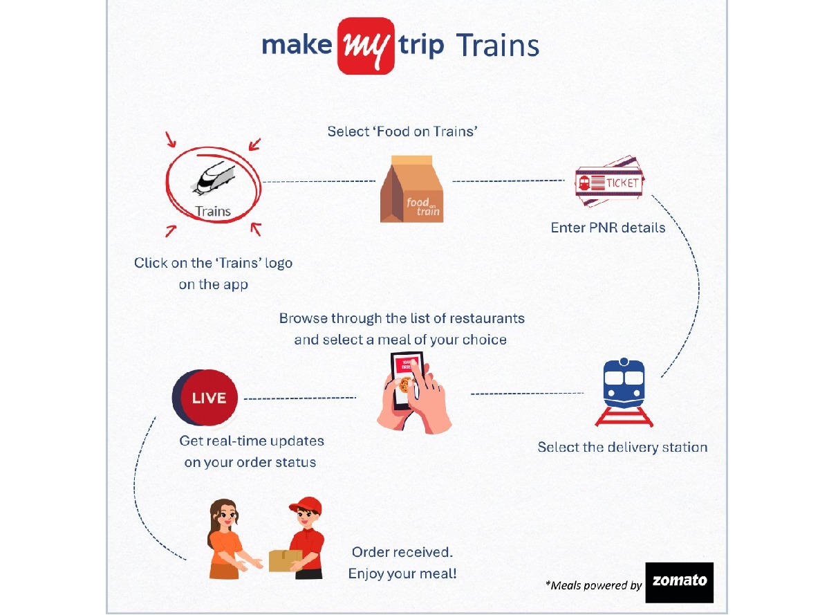 ভারতের শীর্ষস্থানীয় অনলাইন ট্রাভেল কোম্পানি, মেকমাইট্রিপ (MakeMyTrip), ভারতের খাবার অর্ডার এবং ডেলিভারি প্ল্যাটফর্ম জোম্যাটোর সাথে হাত মিলিয়েছে, যাতে ট্রেন যাত্রীদের সরাসরি তাদের আসনে খাবার পৌঁছে দেওয়ার সুবিধা দেওয়া যায়। মেকমাইট্রিপ অ্যাপে ট্রেনের টিকিট বুকিং করা যাত্রীরা এখন ১৩০+ স্টেশনে জোম্যাটোর তালিকাভুক্ত ৪০,০০০+ রেস্টুরেন্ট পার্টনারদের থেকে খাবার অর্ডার করতে পারবেন। এই সুযোগটি গুরুত্বপূর্ণ। ২০২৪-২৫ অর্থবছরে, প্রতিদিন ৯০,০০০ এরও বেশি রেল যাত্রী ভারতীয় রেলওয়ের ই-ক্যাটারিং পরিষেবা ব্যবহার করেছেন, যা বছরের পর বছর ৬৬% বৃদ্ধি পেয়েছে। মেকমাইট্রিপ তার ‘লাইভ ট্রেন স্ট্যাটাস’ টুল ব্যবহার করে তার ‘ফুড অন ট্রেন’ অফার করার জন্য প্রস্তুত, যার মধ্যে ব্রেকফাস্ট, লাঞ্চ, ডিনার এবং দ্রুত খাবারের সুবিধা রয়েছে, এই চাহিদা পূরণের জন্য ভালো অবস্থানে রয়েছে, যা প্ল্যাটফর্মটিকে সবচেয়ে সুবিধাজনক সময়ে যাত্রীদের অর্ডার দেওয়ার জন্য উৎসাহিত করতে সক্ষম করে।