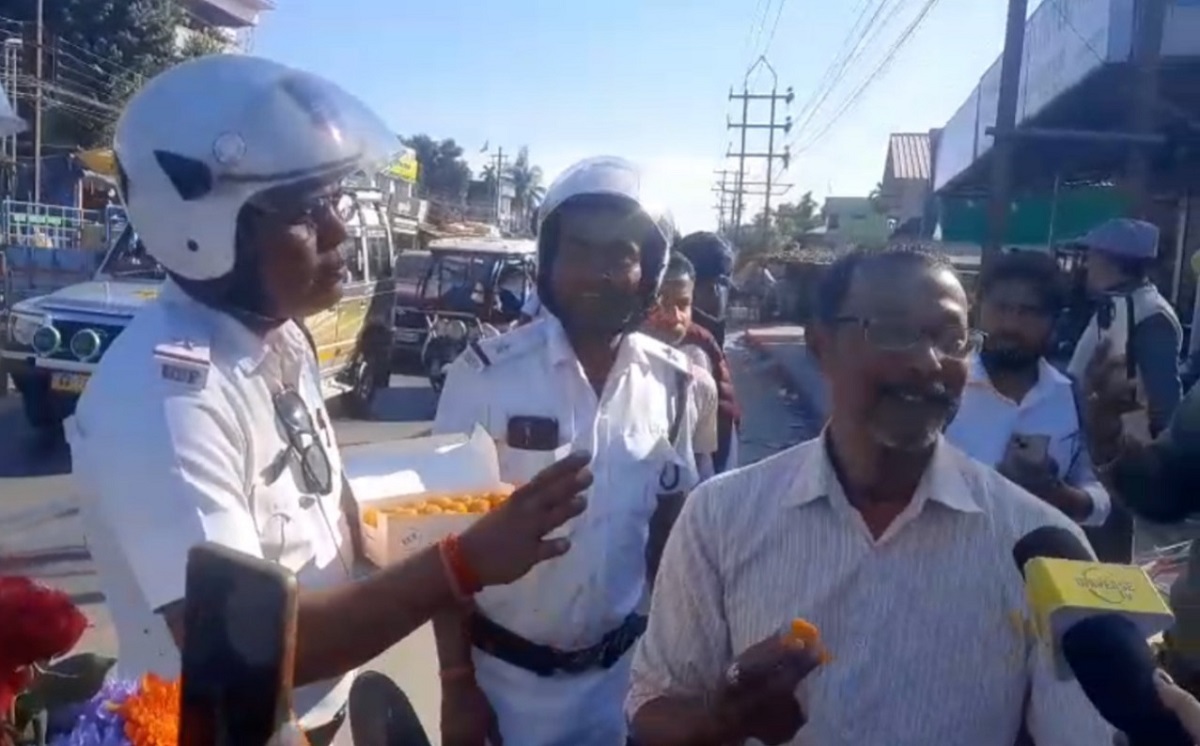 জরিমানা নয়, গোলাপ–চকলেটেই হেলমেটের বার্তা ট্রাফিক পুলিশের
